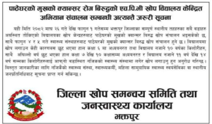 भक्तपुर, यातायात व्यवस्था कार्यालय राधेराधे एरियाबाट दुई जना पक्राउ परेका छन् । सेवाग्राहीहरुलाई सार्वजनिक...